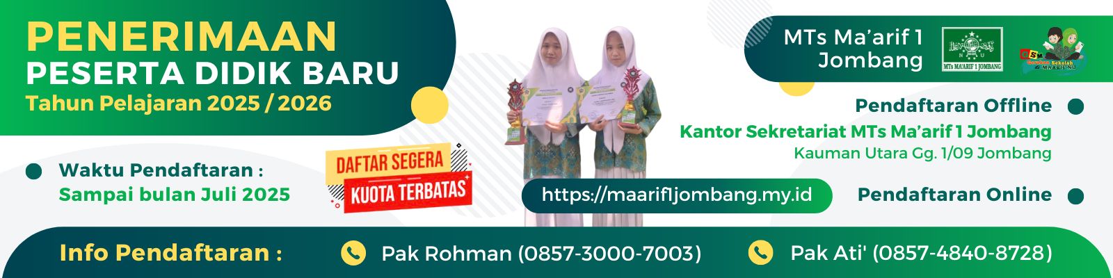 Madrasah Tsanawiyah Ma'arif 1 Jombang, melaksanakan Penilaian Akhir Semester (PAS) Tahun Pelajaran 2023/2024...